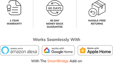 • Connect with Apple HomeKit, Google Home, or Amazon Alexa for voice control